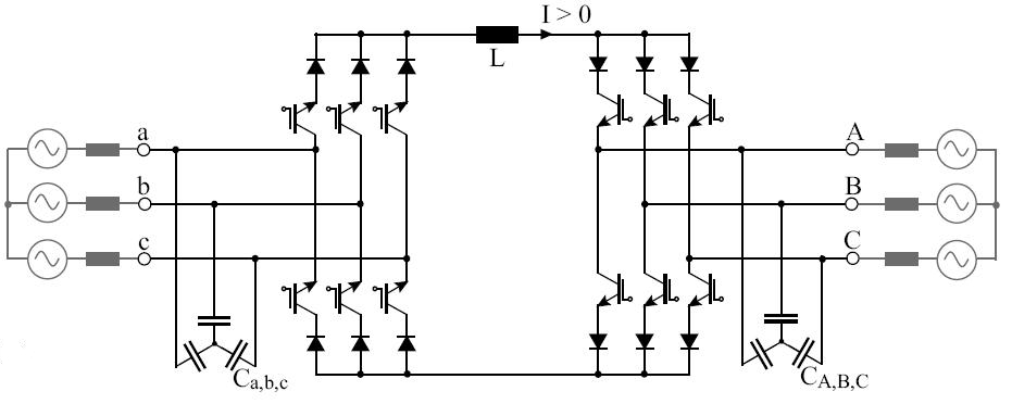 이 유형의 컨버터는 일반적으로 재생 에너지 시스템에서와 같이 DC 전압 소스와 AC 전압 소스 간의 양방향 전력 전송에 사용됩니다. 변압기와 스위치를 사용하여 전력의 흐름을 제어합니다.